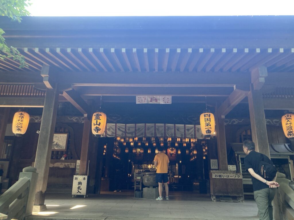 前日入りしまして、主催者の方に土地のものをたくさんご馳走していただき、お遍路八十八カ所のうちの一番札所まで連れて行っていただきました。