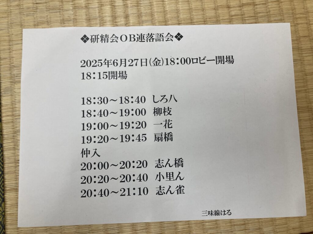 なんにしろ研精会のOB会に出演できたので、今日から「俺は研精会のOBだ」と名乗りたいと思います。OB面したいと思います。