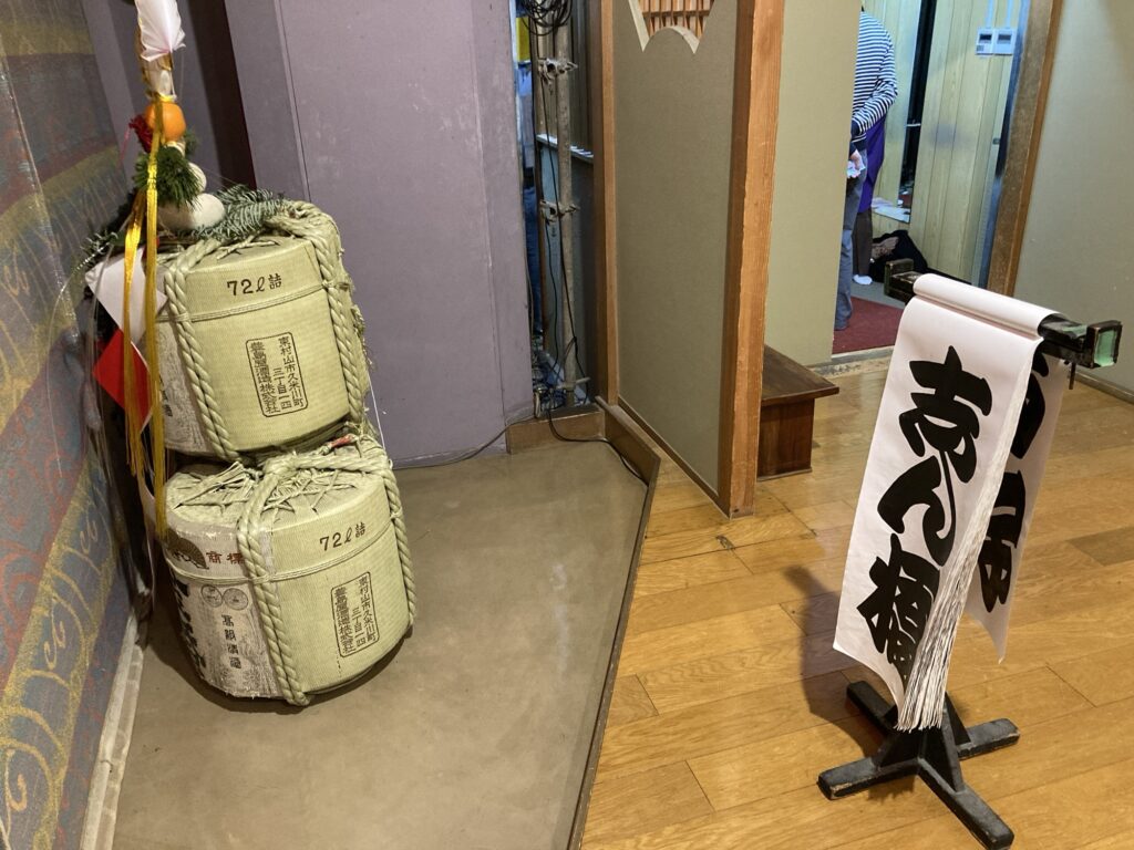 鏡餅も高座にあります。三日目ぐらいに上に乗ってるみかんが腐ります。我太楼師匠がうちの師匠と誕生日が同じだという事を教えてくれました。桃花姉さんは今年も忙しそうです。