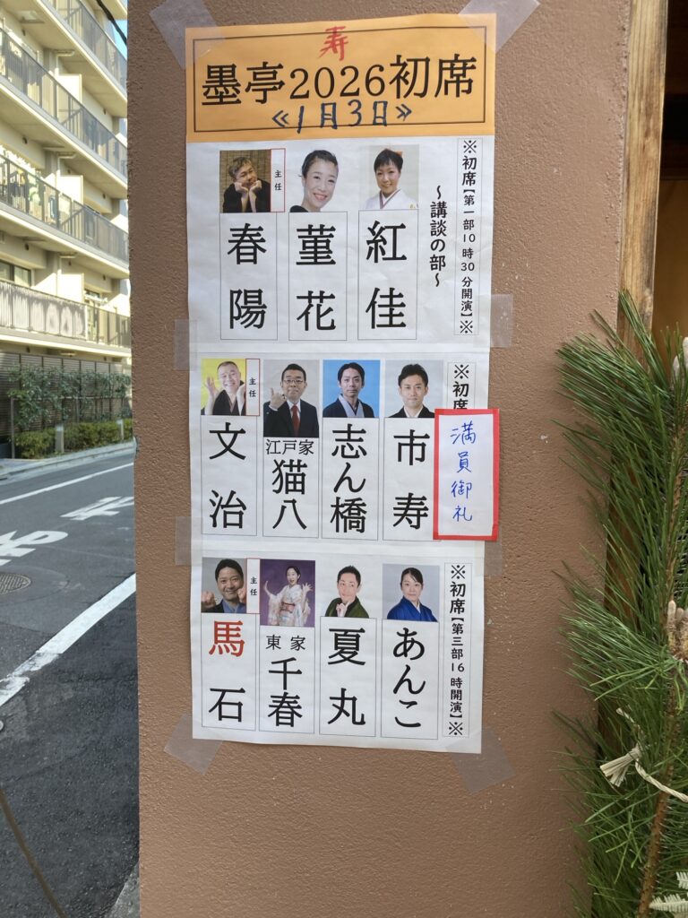 本日は墨亭の初席でございました。ご来場のお客様お寒いなか誠にありがとうございました。