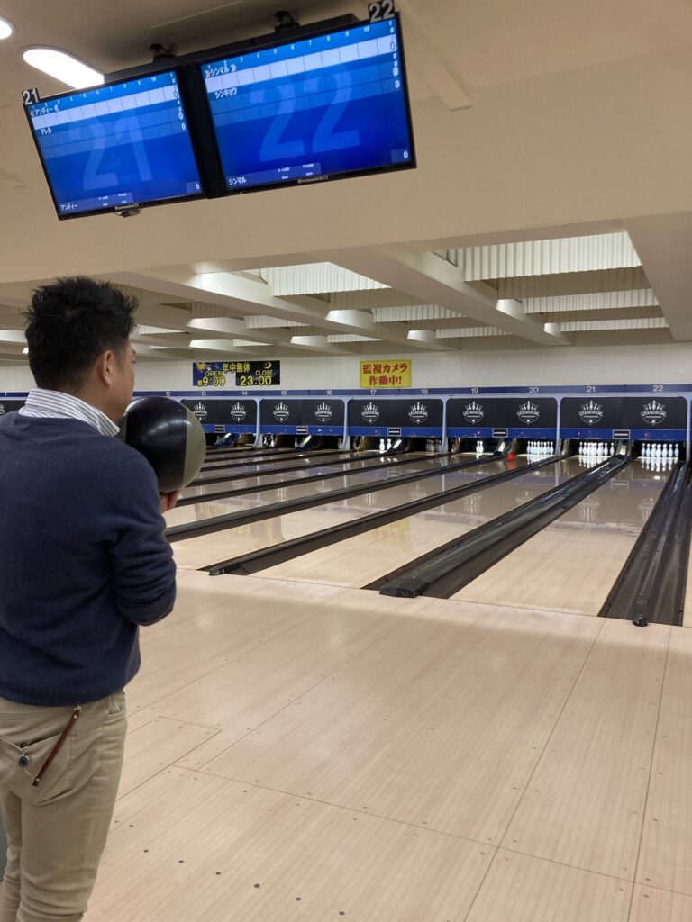 その志ん丸師匠がボウリングに連れていってくれました。プロのような美しいフォームでした。最高スコア200出したことあるそうです。とてもLINE乗っ取りにあった人のフォームにはみえませんでした。