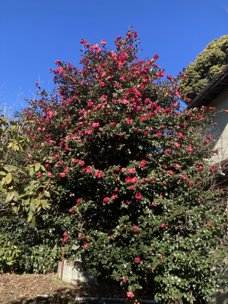 庭に咲いてた椿。野生の椿は咲き誇る。