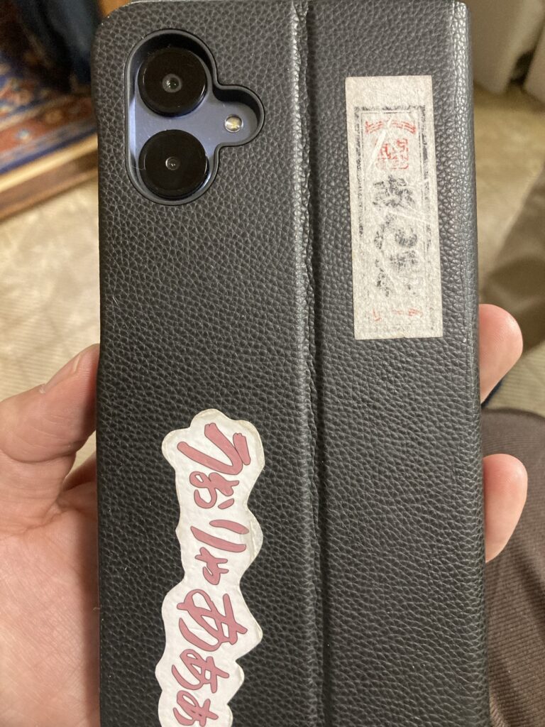 母親の携帯電話。私のかすれた千社札と「うおりゃあああ」というステッカー。親の情緒が不安です。このステッカー「こいつら100%伝説」のグッズだそうです。「こいつら100%伝説」はめちゃくちゃ面白いマンガです。ひとしきり母親と岡田あーみんとダモ鈴木の話をしました。親の情緒が不安です。