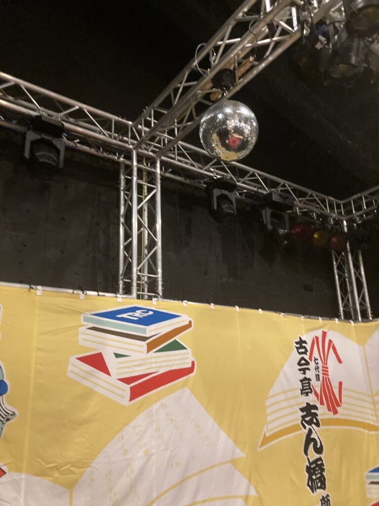 ミラーボールがある!確か花いち兄さんの新作にミラーボールが出てくる新作落語があったような…。ここでやってもらいたいですね。