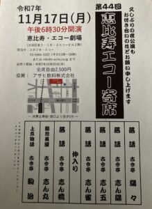 11/20(木)墨亭 古今亭志ん橋のネタ下ろしを聴く会