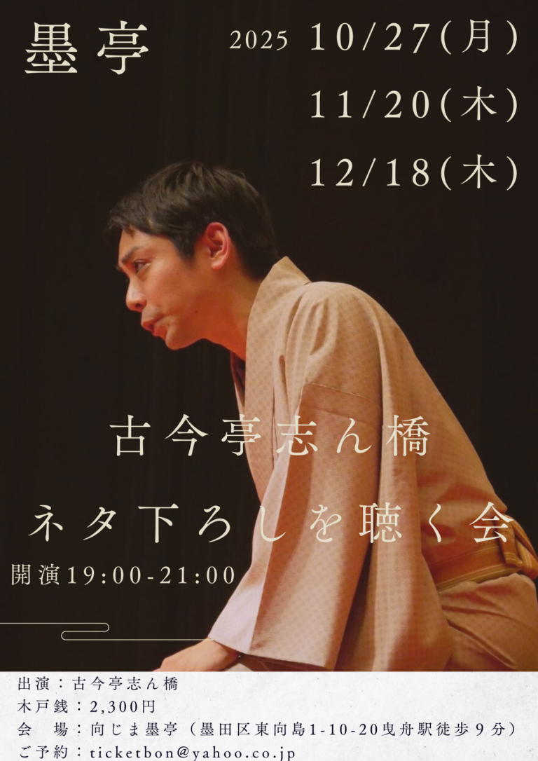 3/24(火)墨亭 古今亭志ん橋のネタ下ろしを聴く会